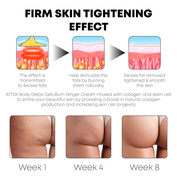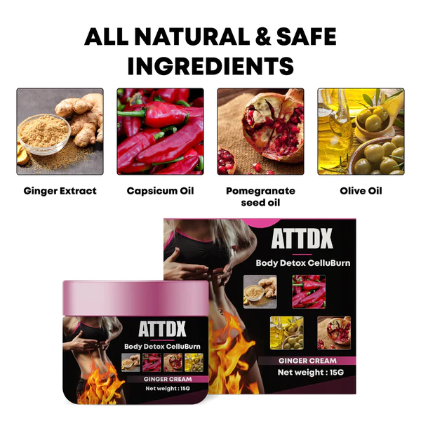 ATTDX BodyDetox CelluBurn GingerCream gives you the upper hand in any workout. This powerful formula is designed to boost your metabolism, allowing it to burn calories faster than ever before. Through a special clinical trial, ATTDX BodyDetox CelluBurn GingerCream was shown to double the results of every exercise routine and increase sweat output.