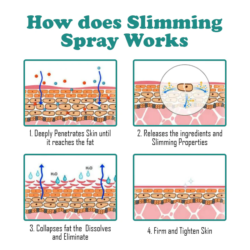 - After getting up in the morning, spray 3-5ml of slimming spray on the target body on an empty stomach.