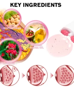 Soy Isoflavone Extract, derived from soybeans, is a key ingredient known for its natural estrogen-like properties. It stimulates the growth and firmness of breast tissue, resulting in a fuller and firmer appearance. Due to its strong antioxidant effect, it also supports the health and radiance of the skin.