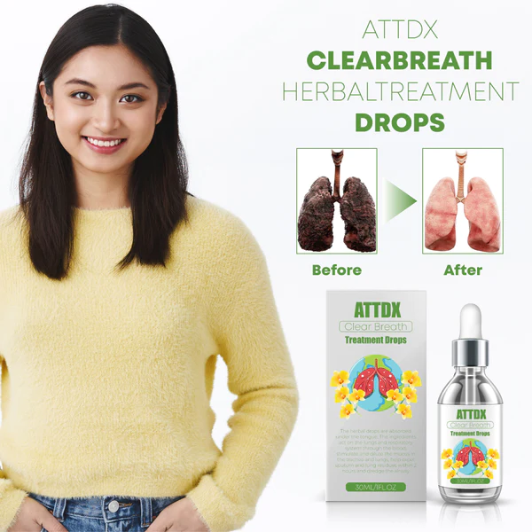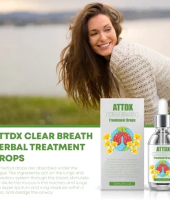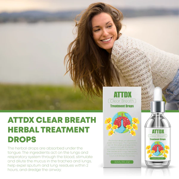 ATTDX ClearBreath HerbalTreatment Drops help with conditions such as respiratory allergies/asthma. These drops are absorbed sublingually and work through the blood in your lungs, helping to clear mucus and dredge your airways. The fifth-generation human-modified protein repair factor developed by the ClearBreath research team helps in the regeneration of the pulmonary trachea and alveolar web, giving you healthy and unobstructed lungs.
