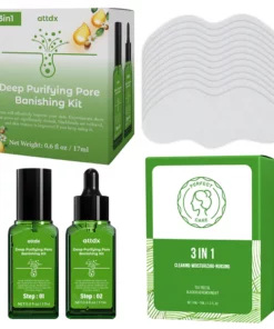 Introducing the ATTDX Deep PurifyingPore Banishing Kit, your ultimate solution for clear, radiant skin. Targeting stubborn blackheads and acne, this kit effectively cleanses pores, reducing breakouts and blemishes for a smoother complexion. By eliminating aged cuticles and dirt from the skin surface, it also brightens skin tone, leaving you with a youthful, glowing appearance.