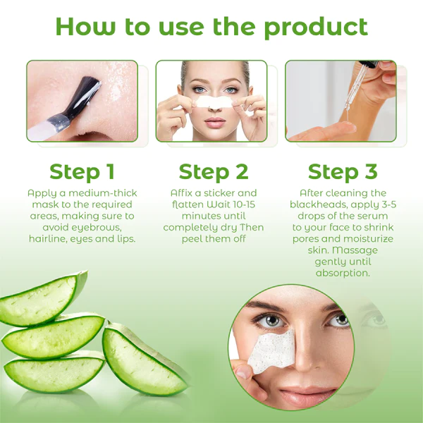- After cleaning the blackheads, apply 3-5 drops of the serum to your face to shrink pores and moisturize skin. Massage gently until absorption.