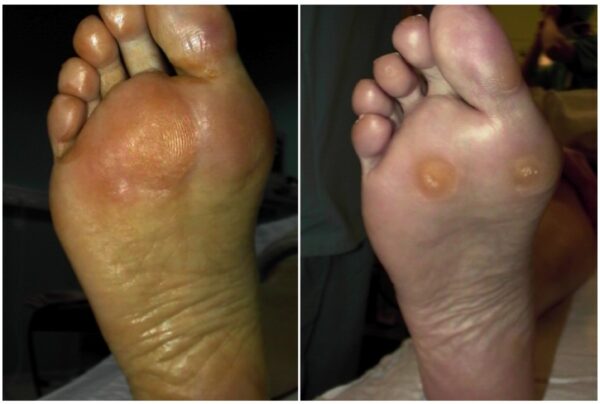 Damp socks and shoes and warm, humid conditions favor the organisms’ growth. An athlete’s foot is contagious and can spread through contact with an infected person or from contact with contaminated surfaces, such as towels, floors, and shoes. The athlete’s foot looks like dry, flaky, scaly skin. The skin may also crack. The infection spreads easily. The fungus thrives in warm, damp environments like swimming pool areas and gym locker rooms.