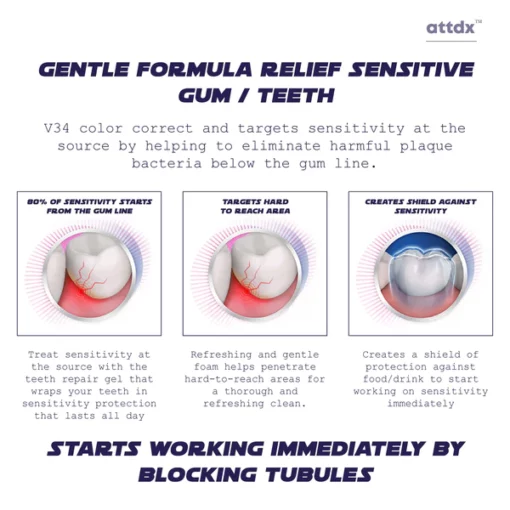 Enriched with antibacterial and anti-inflammatory constituents, this formulation effectively alleviates gum inflammation and curbs the proliferation of oral bacteria. By restoring a balanced micro-ecology within the mouth, it aids in sustaining healthy gum tissue and diminishing oral discomfort.