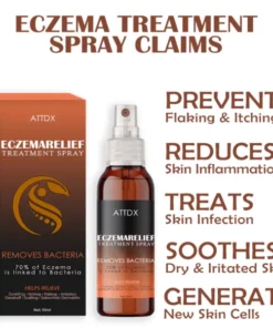 ATTDX EczemaRelief Treatment Spray is an eczema relief product that works to reduce inflammation and redness. It was created to reduce peeling and itching while reducing dryness and irritation. Spray on clean skin to calm your eczema flare-ups, lessen the recurrence of new skin cells, and stop new irritations from forming.