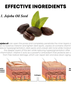 Jojoba oil helps to heal scars because of its high vitamin E concentration, as well as wounds. It also helps to lighten dark spots of the skin due to its skin healing properties, making skin appear lighter in tone. Jojoba is a natural moisturizer that also works well for exfoliating dead skin on the face. This recipe promotes the formation of skin cells while also reducing blemishes, rashes, dark spots, and blackheads.
