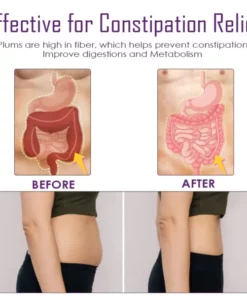 Plums contain a high amount of insoluble fiber, meaning that it does not blend with water. This plays a role in preventing constipation by adding bulk to the stool, which accelerates the rate of waste removal through the digestive tract.