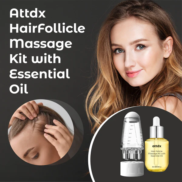 Indulge in luxurious hair rejuvenation with the ATTDX HairFollicle Massage Kit with Essential Oil– Transform your haircare routine into a lavish self-care ritual for vibrant, healthier locks!