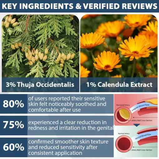 - Allantoin: Softens and protects the skin barrier while enhancing natural healing in sensitive areas.
