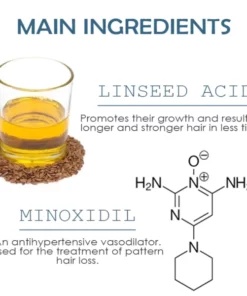 Minoxidil is a medication approved by the Food and Drug Administration for the treatment of hair loss. It dilates blood vessels and improves blood flow to the areas it is applied to, improving their ability to deliver nutrients and oxygen to hair follicles. Minoxidil also helps increase the size of hair follicles, promoting thicker, stronger hair growth. In clinical studies, 85% of participants using minoxidil experienced significant hair growth in just 2 months. This ingredient also helps to balance the oily scalp and increase hair volume as it re-nourishes the hair follicles.