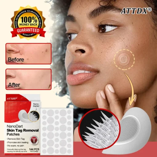 - 1x ATTDX® NanoDart Skin Tag Removal Patches (1box 144patches, made in USA)