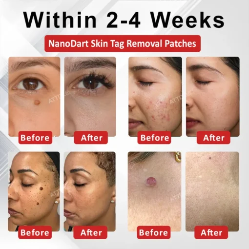 Clinically formulated for precision care, ATTDX® NanoDart Skin Tag Removal Patches target and eliminate skin tags effectively. Backed by recommendations from board-certified dermatologists affiliated with the American Academy of Dermatology (AAD), the patches offer a safe and non-invasive solution for at-home use. Each patch is hygienically sealed, easy to apply, and designed to support natural skin healing with minimal irritation.