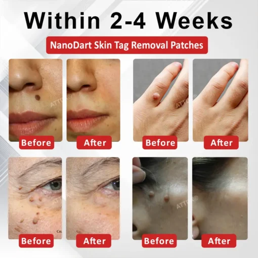 ATTDX® NanoDart Skin Tag Removal Patches feature precision nanodarts that gently penetrate the skin’s surface to deliver powerful active ingredients directly to the root of skin growths.