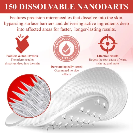 These dissolvable nanodarts release skin-purifying ingredients that break down unwanted growths, leaving the skin smoother and clearer. The patches work quickly, targeting and dissolving skin issues without causing irritation.