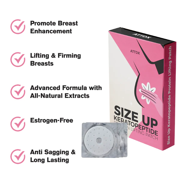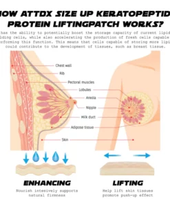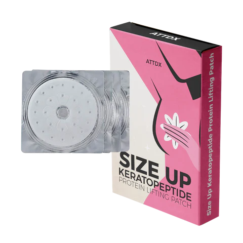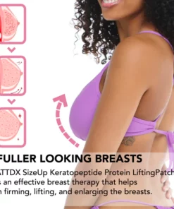 ATTDX SizeUp Keratopeptide Protein LiftingPatch is a breast enhancement product that uses Type 3 peptide protein to achieve the desired effect. This unique formula combines with the body’s natural affinity with peptide protein, which rapidly penetrates the glandular vesicles within 5 minutes of application. This allows the breast’s dry glandular vesicles to absorb nutrients immediately and grow while repairing and strengthening its cooper’s ligaments.