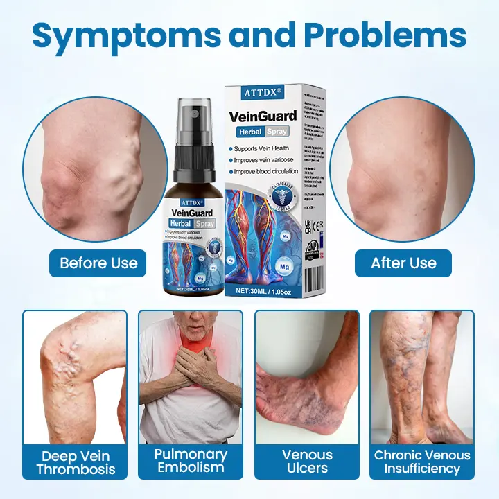 Are you struggling with varicose veins, spider veins, or chronic leg discomfort? Discover the power of ATTDX® VeinGuard Herbal Spray, a plant-based solution designed to support healthy circulation, reduce the appearance of veins, and leave your legs feeling lighter, smoother, and revitalized.