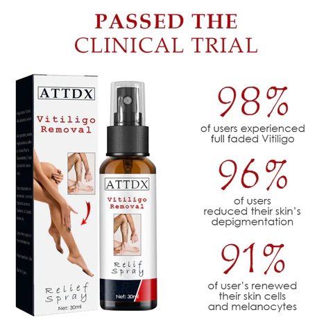 ATTDX VitiligoRemoval Relief Spray is a natural and safe solution for treating the symptoms of vitiligo. Our dermatologist founder developed it with the goal of helping patients find relief from their vitiligo, a condition in which skin discoloration results in patchy, depigmented areas on the skin. Thousands of people have used ATTDX VitiligoRemoval Relief Spray to treat their vitiligo symptoms, without negative side effects or harmful chemicals.