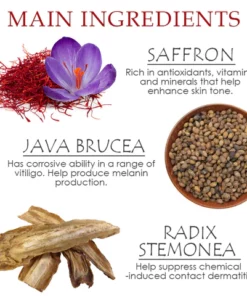 - Java Brucea showed significant corrosive ability in a range of experiments on vitiligo. This helped to produce melanin production, which in turn helped to cure the disease.
