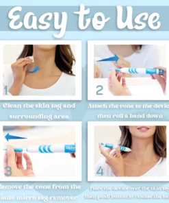 4. Place the device over the skin tag then push the button to release the band.