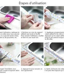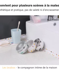 Il est fabriqué en PVC de haute qualité, imperméable et résistant à la moisissure. Cela empêche l’eau de pénétrer dans les joints, gardant votre salle de bain, cuisine ou baignoire propre, bien rangée et sans moisissure.