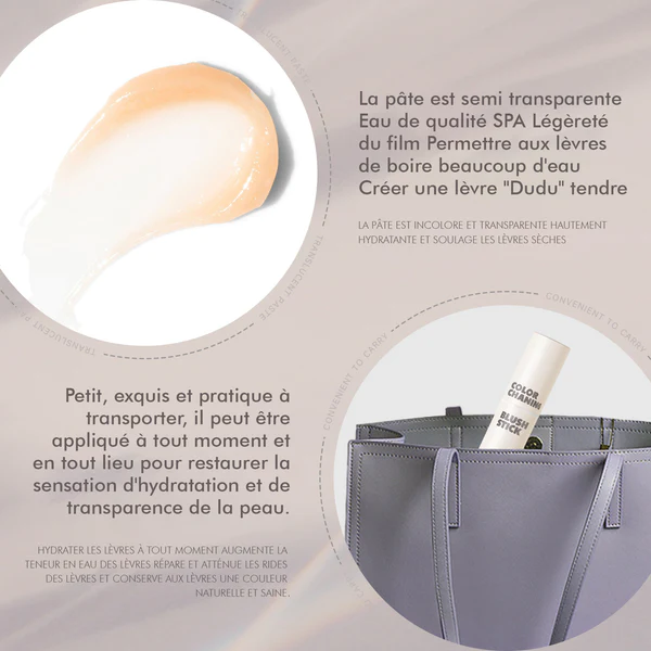 【Formulation adaptative et douce】Découvrez un produit qui se fusionne naturellement avec votre peau, présentant une apparence jeune et dynamique. Ce bâton de fard à joues s’adapte à la température de votre corps, passant par des nuances de rose pour correspondre parfaitement à vos lèvres, vos joues ou même comme ombre à paupières. Sa formule douce est dépourvue de produits chimiques agressifs, de parfums et de colorants, garantissant une application propre sans aucun résidu. Maximisez ses bienfaits en hydratant avant utilisation.