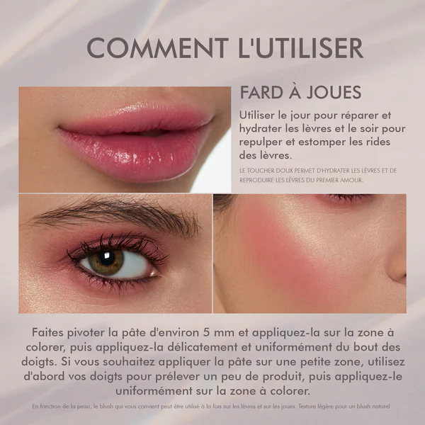 Imaginez un seul produit qui s’adapte sans effort à la température unique de votre peau, offrant la teinte parfaite de rose sur vos yeux, vos joues et vos lèvres. Ce merveilleux produit polyvalent promet non seulement la commodité, mais aussi une transformation délicieuse, garantissant que chaque application soit aussi unique et vibrante que vous. Embrassez le charme du maquillage naturel et lumineux qui évolue avec vous, faisant de chaque moment une opportunité de briller.