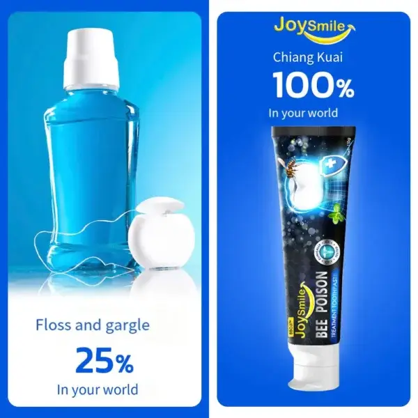 BBOJI™JoySmile Bee poison Treatment toothpaste uses bee poison to naturally disinfect and kill bacteria deep within the gums, repair cavities, and continuously eliminate harmful bacteria. This continuous bactericidal action helps prevent further tooth decay and promotes long-term oral health.