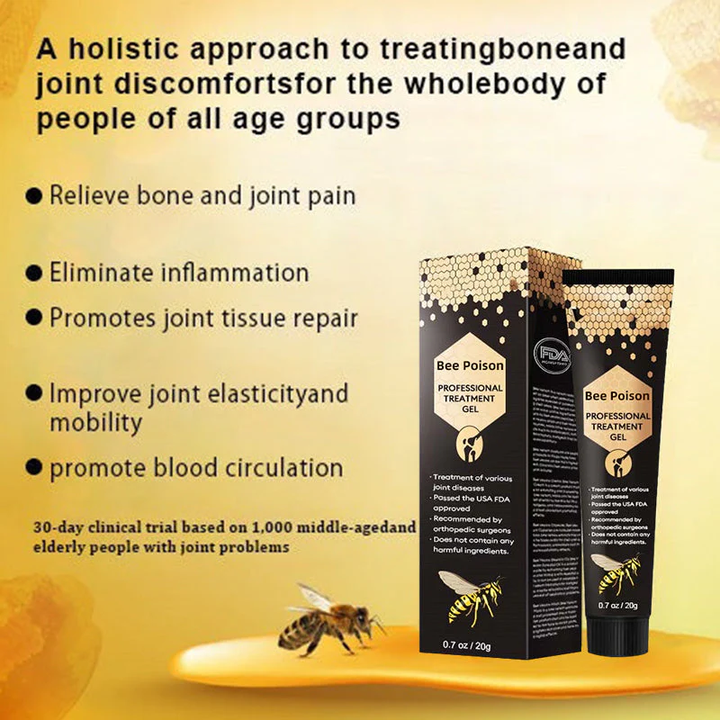 - The main component of bee poison is melittin, a biologically active protein secreted by the needle glands of bees. It has a strong anti-inflammatory and analgesic effect, which can effectively relieve arthritis pain and swelling.