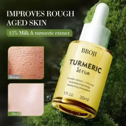Chronic inflammation and environmental stressors can cause damage to the skin’s surface, leading to dullness and uneven texture. The combination of Niacinamide and Milk Extract in BBOJI™ Turmeric Milk Face Serum helps improve skin tone, brighten dark spots, and even out the complexion. The serum also gently exfoliates, stimulating the formation of new skin cells and contributing to a smoother, more youthful-looking appearance.