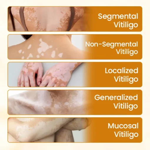 Vitiligo is primarily categorized by the shape of pigment loss, lesion locations, and related features.