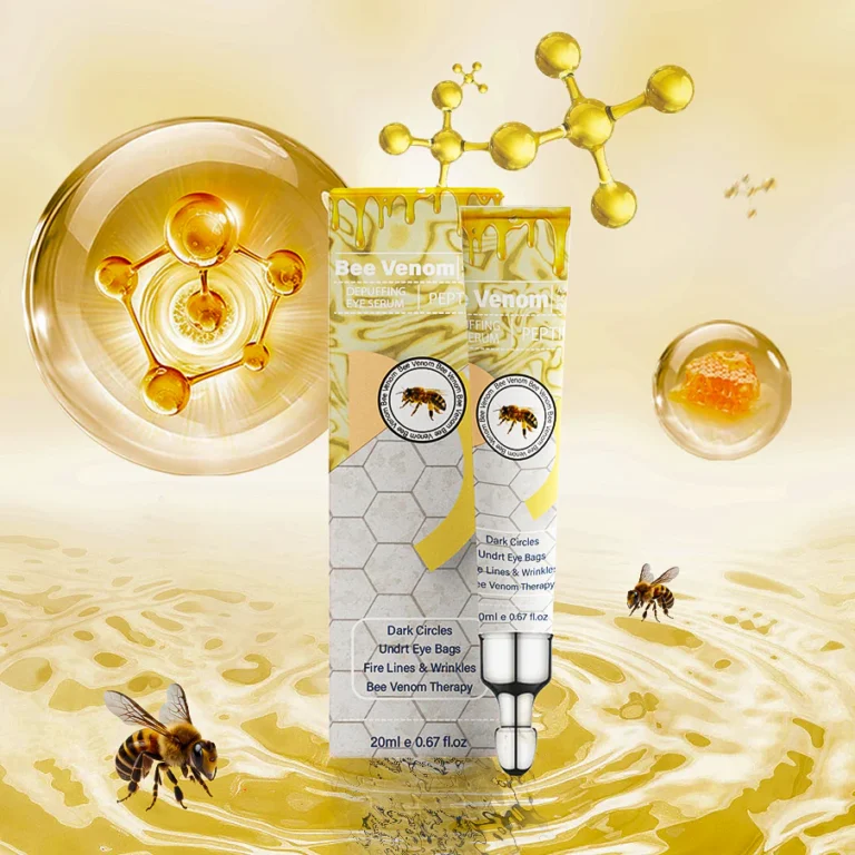 Firming and Tightening: Ingredients in bee venom also help tighten the skin, combating the sagging of skin around the eyes that occurs with aging.