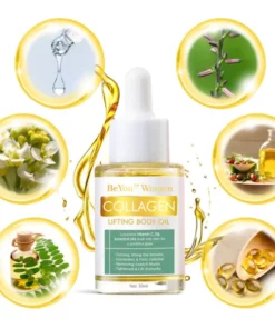 The BeYou™ Women Collagen Lifting Body Oil is a product that helps to reduce the visible signs of aging and wrinkles, providing a revitalized appearance to the skin in just 3-5 weeks. This oil includes scientifically tested components that can effectively combat wrinkles, such as Collagen, Hyaluronic Acid, Phenol Esters, and Vitamin E.