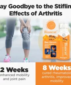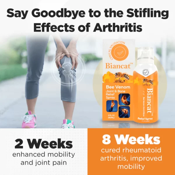 Don’t let arthritis hold you back any longer! Introducing the revolutionary Biancat™ Bee Venom Joint & Bone Relief Spray, your key to a life free from joint pain, stiffness, and swelling. Our breakthrough formula penetrates deep, works fast, and delivers astounding results. Say goodbye to pain, and say hello to life!