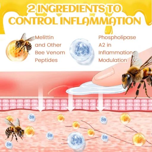 - Innovative Blend: Leverages bee venom’s natural power, including Bee Venom Peptides and Phospholipase A2, for potent anti-inflammatory action.