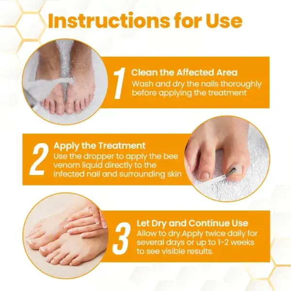 This Bee Venom Fungus Treatment Oil creates a protective barrier around the nails, preventing the recurrence of fungal infections and other common nail conditions. This advanced formula helps maintain lasting nail health, ensuring your nails remain strong, clear, and free from future infections.