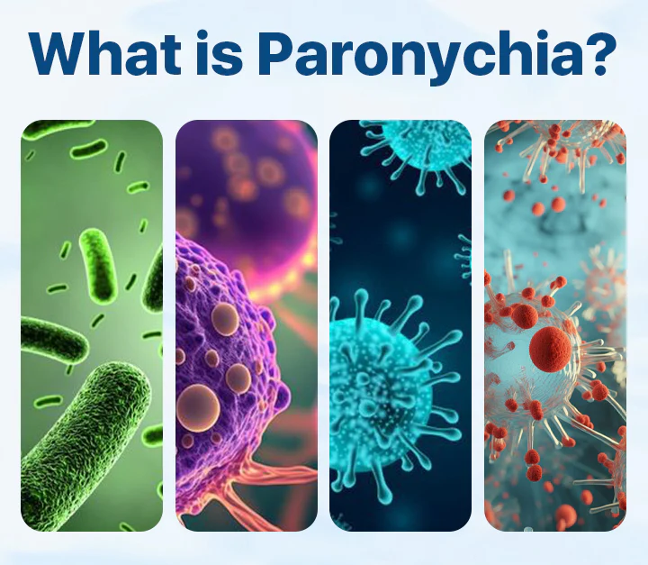 Paronychia is a skin infection that occurs around the nails. It can cause redness, swelling, and nail fold maceration. Various organisms can cause paronychia, including bacteria and fungi. Candida paronychia is a specific type of this infection caused by the yeast-like organism Candida.