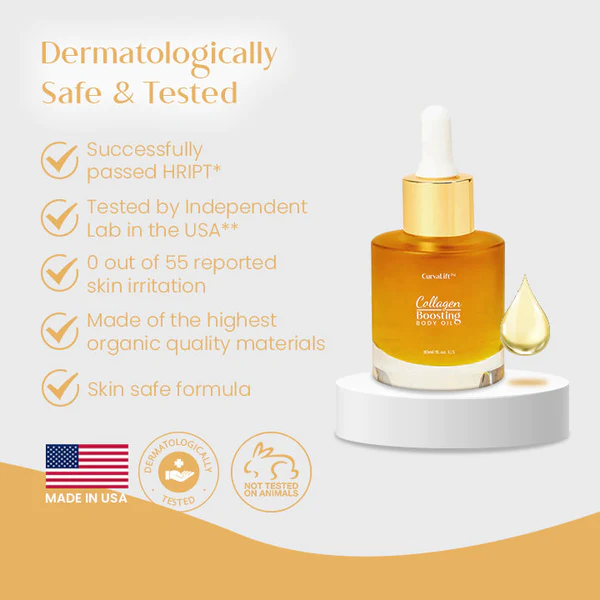 Biancat™ CurvaLift Collagen Boosting Body Oil comes highly recommended by Board-certified dermatologist, Dr. Vera, with over a decade of experience in skin treatment. It is an effective solution for common skin issues such as sagging arms, neck lines, chest pain, stretch marks, cellulite in the abdomen/thighs/buttocks, and sagging buttocks, among others. This product is made from 100% natural plant extracts, making it safe for all skin types, including those with sensitive skin. Experience the benefits of this natural and powerful body oil without any negative side effects.
