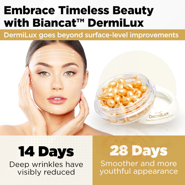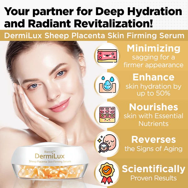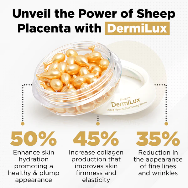 Discover the secret to ageless beauty with Biancat™ DermiLux: Experience the transformative power of Sheep Placenta for visibly firmer, smoother, and rejuvenated skin.