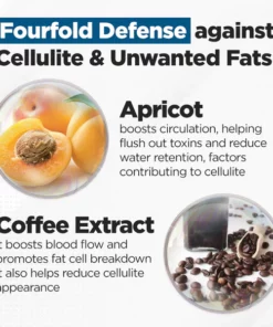 Coffee Extract: A potent antioxidant rich in caffeine, coffee extract boosts blood flow and promotes fat cell breakdown. It helps reduce cellulite appearance by dehydrating fatty cells and minimizing the ‘orange peel’ look, while its diuretic properties flush out toxins and excess fluid.