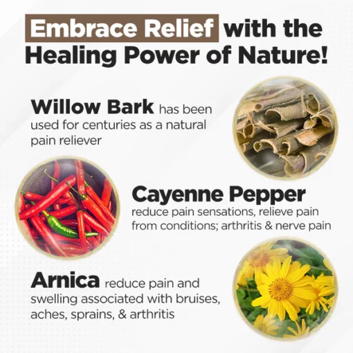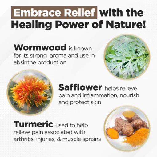 - Ingredients: Wormwood, Safflower , Turmeric, Willow Bark , Cayenne Pepper , Arnica