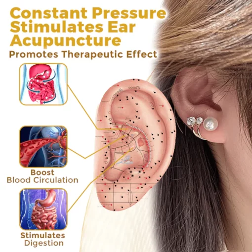 When adorned, our earrings exert gentle, consistent pressure on acupuncture points in the ears. This pressure mirrors the therapeutic effects of acupuncture, enhancing energy flow throughout your body, instilling balance, and contributing to holistic health. In addition, it stimulates body functions integral to detoxification and weight loss such as improving metabolism, enhancing digestion, reducing water retention, and promoting efficient toxin elimination.