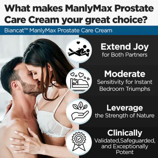Introducing Biancat™ ManlyMax Prostate Care Cream, a ground-breaking convergence of prostate well-being and sensual enhancement. A marvel of innovation that addresses prostate complexities, while honing sensitivity control for sustained, enriched pleasure.
