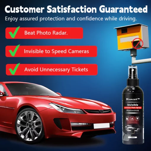Avoid costly traffic fines with a stealthy twist! Introducing Biancat™ PhantomShield, the invisible license plate spray that shields your vehicle’s identity from prying traffic cameras. Our innovative formula creates a reflective barrier, making your license plate numbers elusive to flash photography. Keep your car unidentified by speed and red light cameras, and drive with peace of mind. This reduces the likelihood of vehicles being identified in speed or red light camera images, aiding in the avoidance of traffic fines associated with such detections.