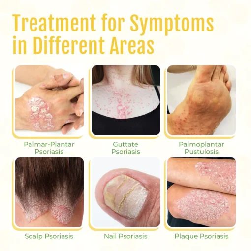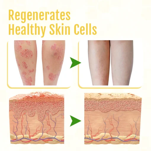 Regulating Cell Turnover: Contains elements that help normalize the rapid turnover of skin cells seen in psoriasis, reducing the buildup of skin cells that leads to scaling and thickened skin.