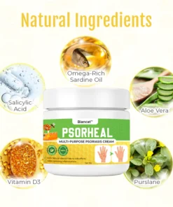 At the heart of Biancat™ PsorHeal’s effectiveness lies a sophisticated blend of active ingredients, each selected for its unique properties to target the root causes of skin discomfort and visible symptoms. Here’s how it works: