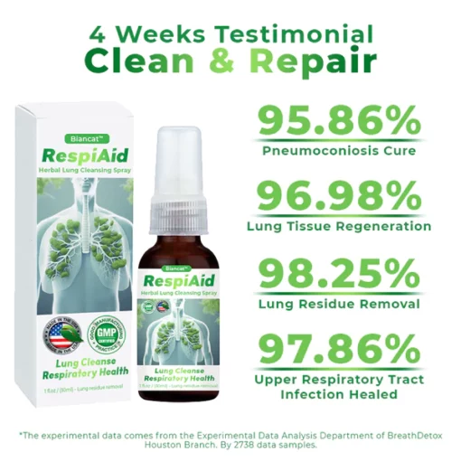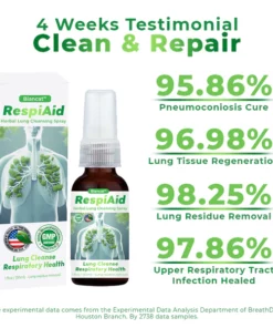 Discover the power of nature with Biancat™ RespiAid, your natural ally in achieving optimal lung and airway health. Our expertly crafted herbal spray offers a groundbreaking solution to the respiratory challenges posed by allergies, asthma, smoking, COPD, pneumonia, bronchitis, and weakened airways. In just 8 weeks, experience a transformation in your breathing, with our formula designed to cleanse the lungs, eliminate phlegm, and fortify your respiratory system.