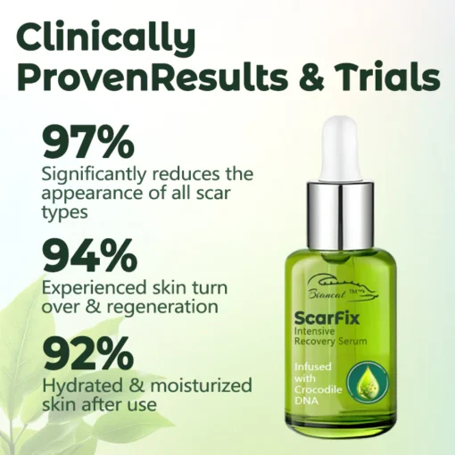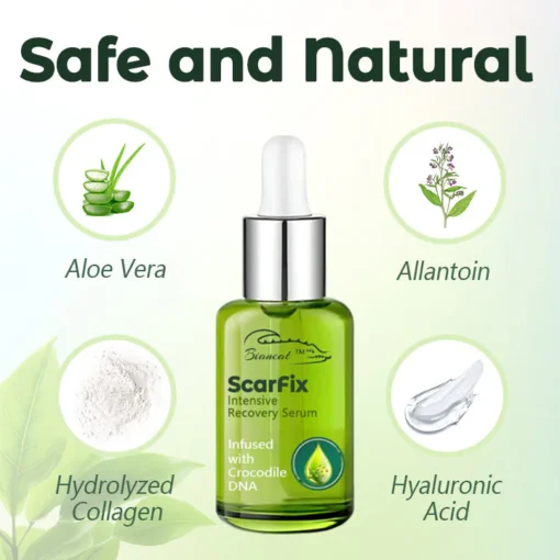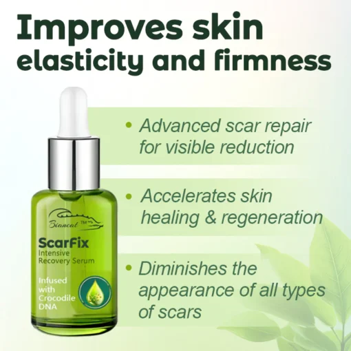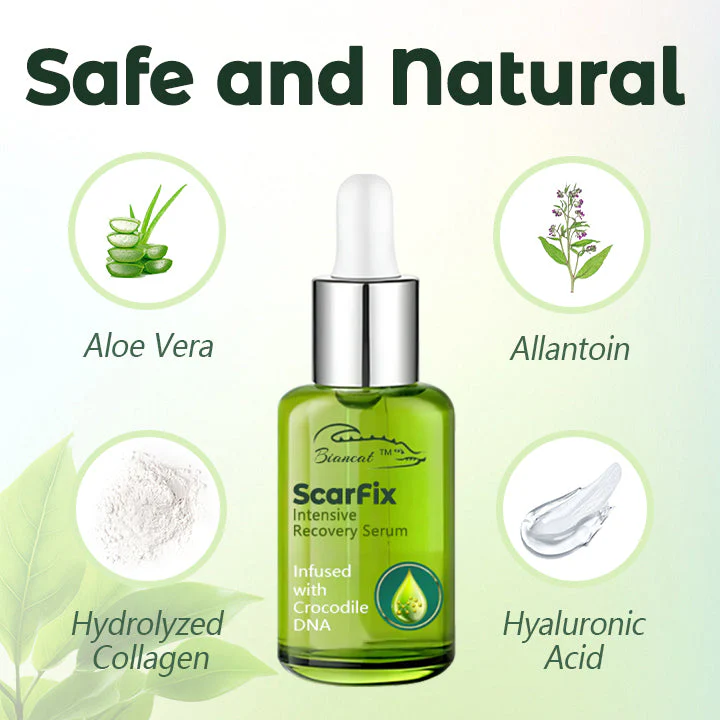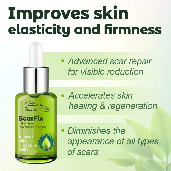 Biancat™ ScarFix Intensive Recovery Serum, your ultimate solution for effectively eliminating scars and restoring your skin’s flawless appearance. Our advanced formula harnesses the extraordinary regenerative power of crocodile self-repair DNA, a unique ingredient celebrated for its ability to deeply penetrate the skin and stimulate natural cell renewal processes. This innovative essence works at the root of the issue, promoting the growth of healthy skin cells to visibly reduce scars and enhance your skin’s overall texture and radiance.