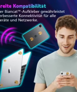 Der Biancat™ Signalverstärker-Aufkleber bietet universelle Kompatibilität und einfache Anwendung für dauerhafte Konnektivität. Entwickelt für eine Vielzahl von Geräten, einschließlich Smartphones, Tablets, Laptops und WLAN-Router, sorgt er für verbesserte Konnektivität bei jedem Gerät. Die Anwendung ist einfach: kleben Sie ihn einfach auf die Rückseite Ihres Geräts für ein sofortiges und anhaltendes Upgrade der Konnektivität.
