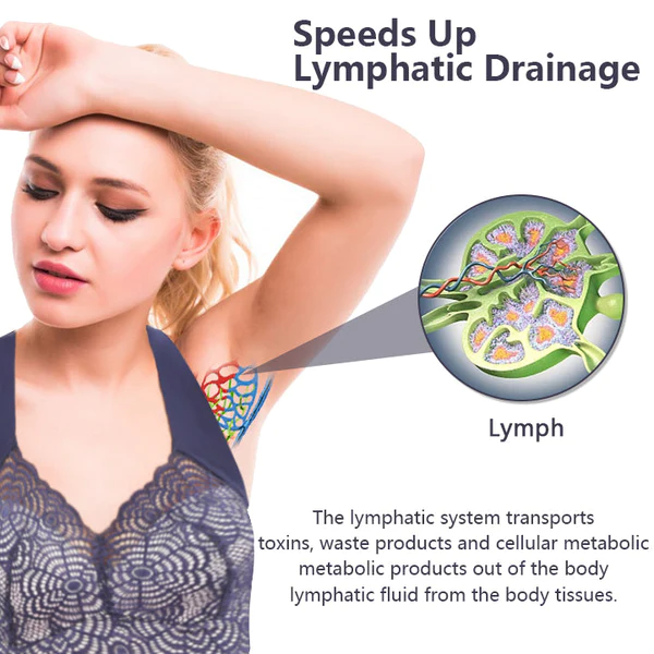 This special bra is designed to reduce fat accumulations and simultaneously control fluid retention in the armpit areas. It redirects fluids to appropriate lymph node zones, especially when lymph nodes have been removed from the armpits. This results in a decrease in skin swellings caused by excess fluid and an overall improved skin texture, including smaller pores.