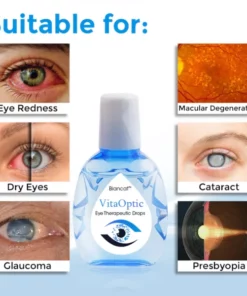 Biancat™ VitaOptic Eye Therapeutic Drops aren’t your ordinary eye drops. They’re a blend of nature’s finest ingredients, scientifically proven to nourish your eyes and combat a range of eye conditions. The power of VitaOptic technology within these drops offers a comprehensive solution to red eyes, dry eyes, and even more severe conditions like glaucoma and macular degeneration.